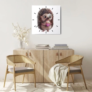 Zegar ścienny - Uroczy jeż trzymający kolorową babeczkę - 30x30cm - Święto jest co dzień - Nowoczesna dekoracja ścienna do salonu, kuchni i sypialni ARTTOR