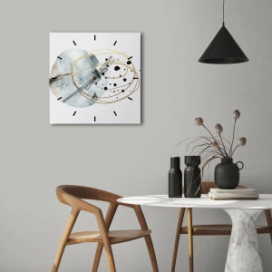 Zegar ścienny - Minimalistyczna abstrakcja z geometrycznym wzorem i złotymi liniami - 30x30cm - W objęciach przestrzeni - Nowoczesna dekoracja ścienna do salonu i sypialni ARTTOR