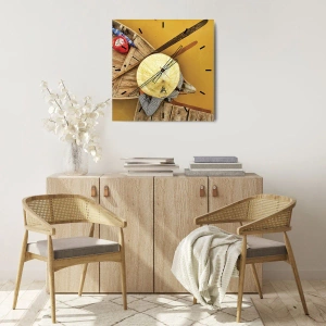 Zegar ścienny - Tradycyjna łódź widziana z lotu ptaka - 30x30cm - Życie na żółtej rzece - Nowoczesna dekoracja ścienna do salonu i sypialni ARTTOR