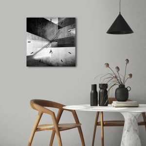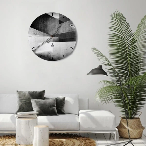 Zegar ścienny - Struktura przestrzeni - Geometryczna struktura w odcieniach szarości