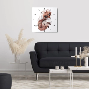 Zegar ścienny - Uroczy lisek w akwarelowym stylu na jasnym tle - 30x30cm - Tylko pokochać - Nowoczesna dekoracja ścienna do salonu i sypialni ARTTOR