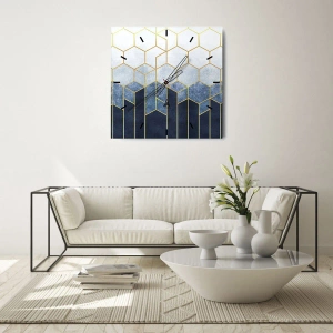 Zegar ścienny - Geometryczny wzór z sześcianów w odcieniach niebieskiego i złota - 30x30cm - Kompozycja w synkopowym rytmie - Nowoczesna dekoracja ścienna do salonu, kuchni i sypialni ARTTOR