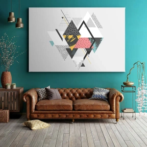 Obraz na płótnie - Geometryczne wzory na jasnym tle - 70x50cm - Wariacja na trójkąt i romb - Nowoczesna dekoracja ścienna do salonu i sypialni ARTTOR