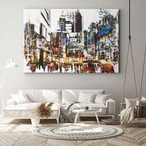Obraz na płótnie - Nowoczesny miejski pejzaż w artystycznym stylu - 120x80cm - Miasto migotliwe - Nowoczesna dekoracja ścienna do salonu, kuchni i sypialni ARTTOR