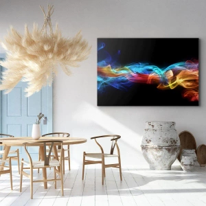 Obraz na płótnie - Kolorowy dym na czarnym tle - 50x70cm - Tęczowy taniec mgieł - Nowoczesna dekoracja ścienna do salonu, kuchni i sypialni ARTTOR