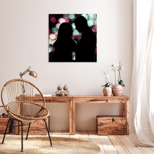 Obraz na płótnie - Sylwetki pary na tle kolorowych świateł bokeh - 70x100cm - Tak! - Nowoczesna dekoracja ścienna do salonu i sypialni ARTTOR