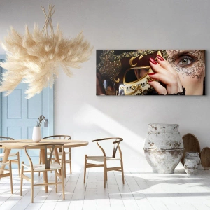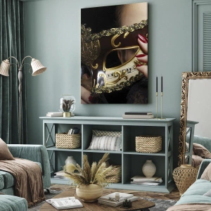 Obraz na płótnie - Kobieta w masce weneckiej ozdobionej złotem i koronką - 70x100cm - Mój świat jest barokowy - Nowoczesna dekoracja ścienna do salonu i sypialni ARTTOR