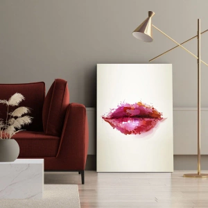 Obraz na płótnie - Abstrakcyjny malunek ust w intensywnych kolorach - 50x70cm - Czerwieńszy odcień czerwieni - Nowoczesna dekoracja ścienna do salonu, kuchni i sypialni ARTTOR