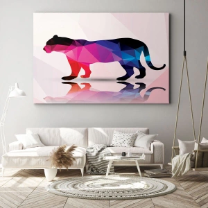 Obraz na płótnie - Geometryczna sylwetka pantery w odcieniach różu i niebieskiego - 80x120cm - Dimentowa pantera - Nowoczesna dekoracja ścienna do salonu i sypialni ARTTOR
