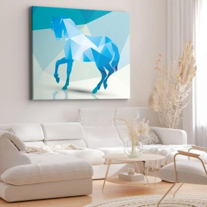 Obraz na płótnie - Geometryczna sylwetka konia w odcieniach niebieskiego - 80x120cm - Geometryczny koń w turkusie - Nowoczesna dekoracja ścienna do salonu i sypialni ARTTOR