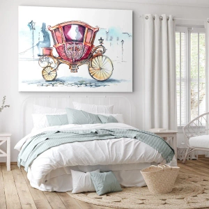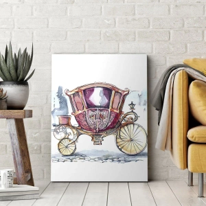 Obraz na płótnie - Elegancka karoca w stylu retro w odcieniach różu i złota - 50x70cm - Do ślubu czy na bal? - Nowoczesna dekoracja ścienna do salonu, kuchni i sypialni ARTTOR