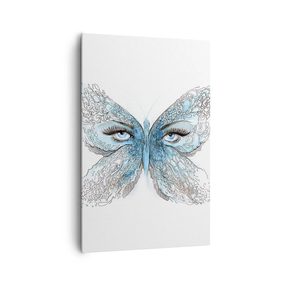 Obraz na płótnie - Artystyczna akwarela motyla z niebieskimi oczami - 80x120cm - Modraszek eros - Nowoczesna dekoracja ścienna do salonu i sypialni ARTTOR