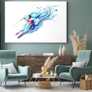 Obraz na płótnie - Akwarelowy obraz narciarza w dynamicznym zjeździe z górskiej trasy - 50x70cm - Szalony pęd do radości - Nowoczesna dekoracja ścienna do salonu, kuchni i sypialni ARTTOR