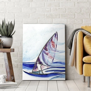 Obraz na płótnie - Surfer na falach w abstrakcyjnej kompozycji akwarelowej - 80x120cm - Z wiatrem w rytmie fal - Nowoczesna dekoracja ścienna do salonu i sypialni ARTTOR