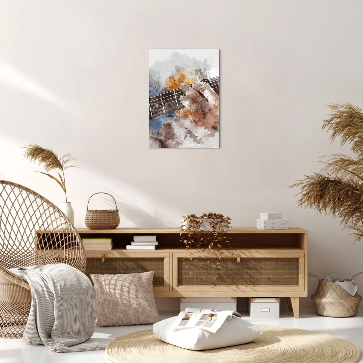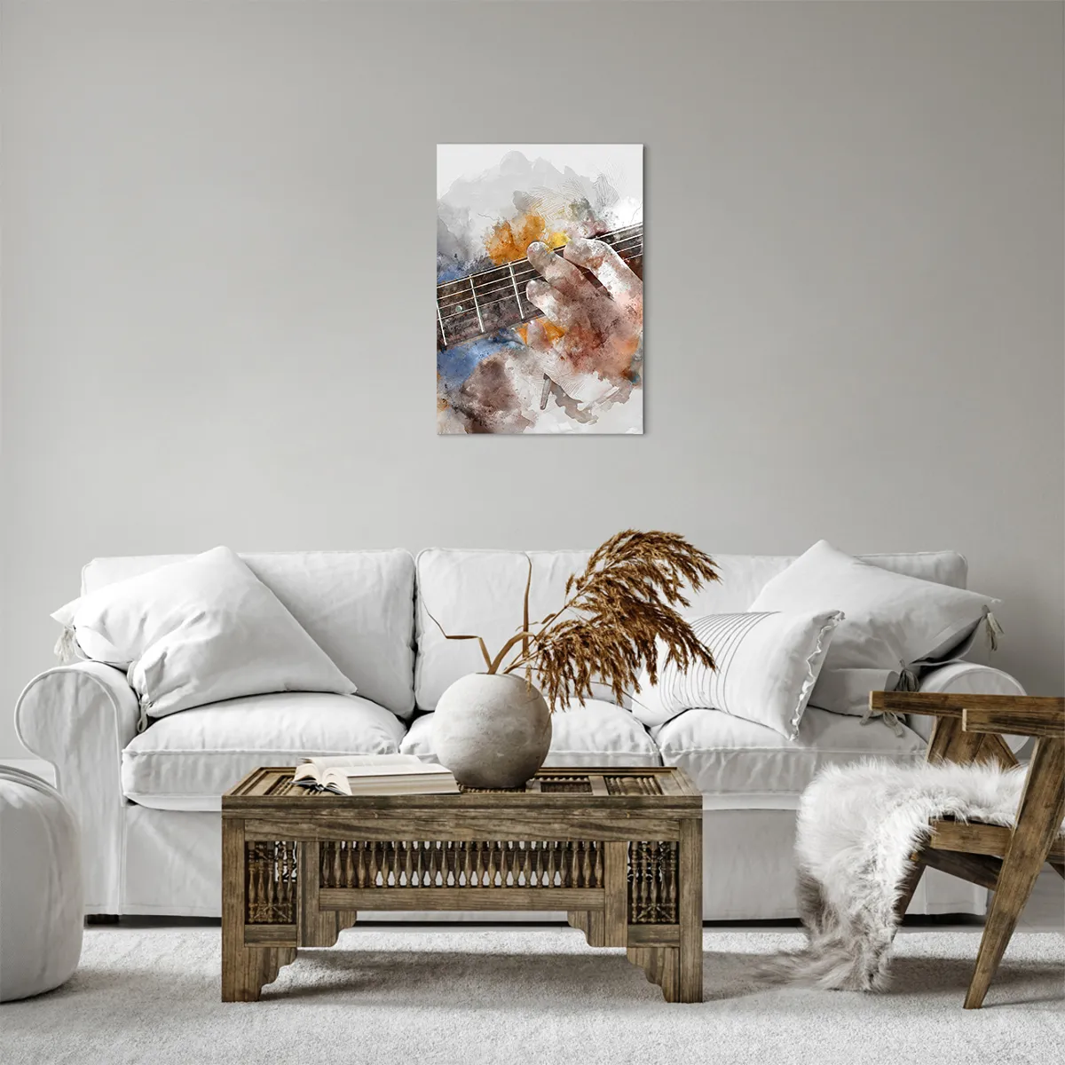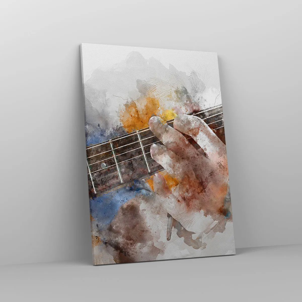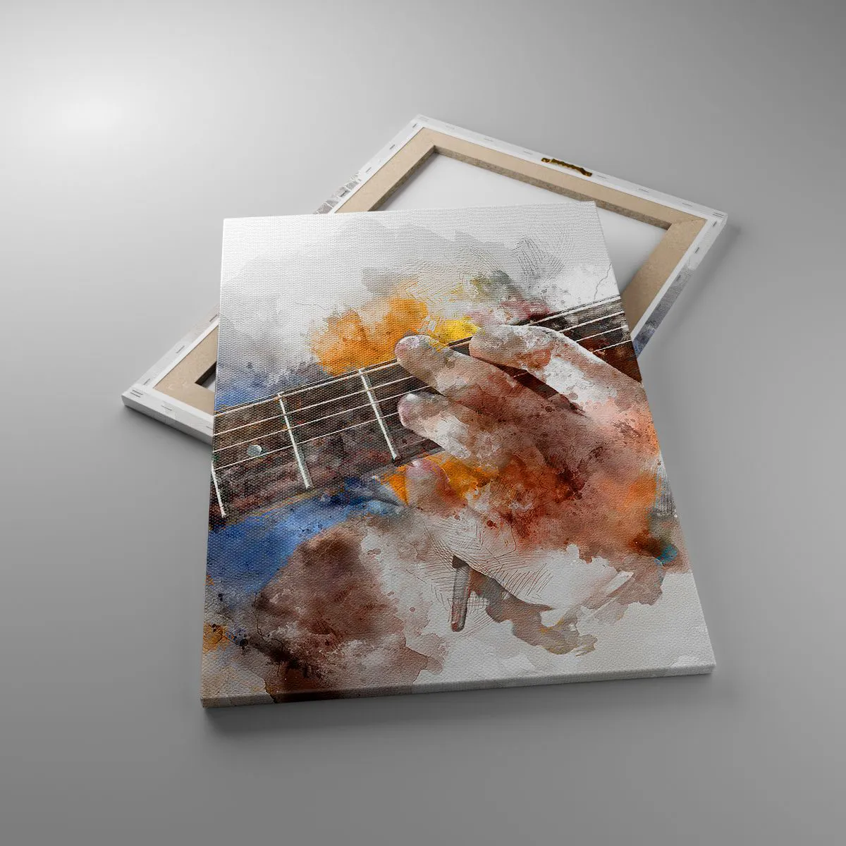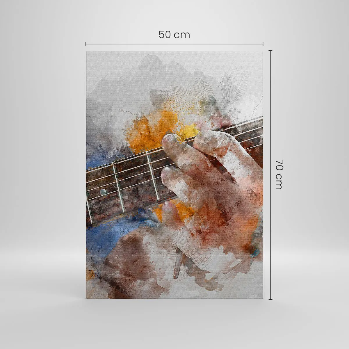 Obraz na płótnie - Artystyczna ilustracja dłoni grającej na gitarze - 50x70cm - Poezja między strunami - Nowoczesna dekoracja ścienna do salonu, kuchni i sypialni ARTTOR