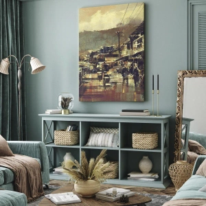 Obraz na płótnie - Miasteczko z mostem i uliczkami w artystycznym stylu - 80x120cm - Życie jako bogactwo szarości - Nowoczesna dekoracja ścienna do salonu i sypialni ARTTOR