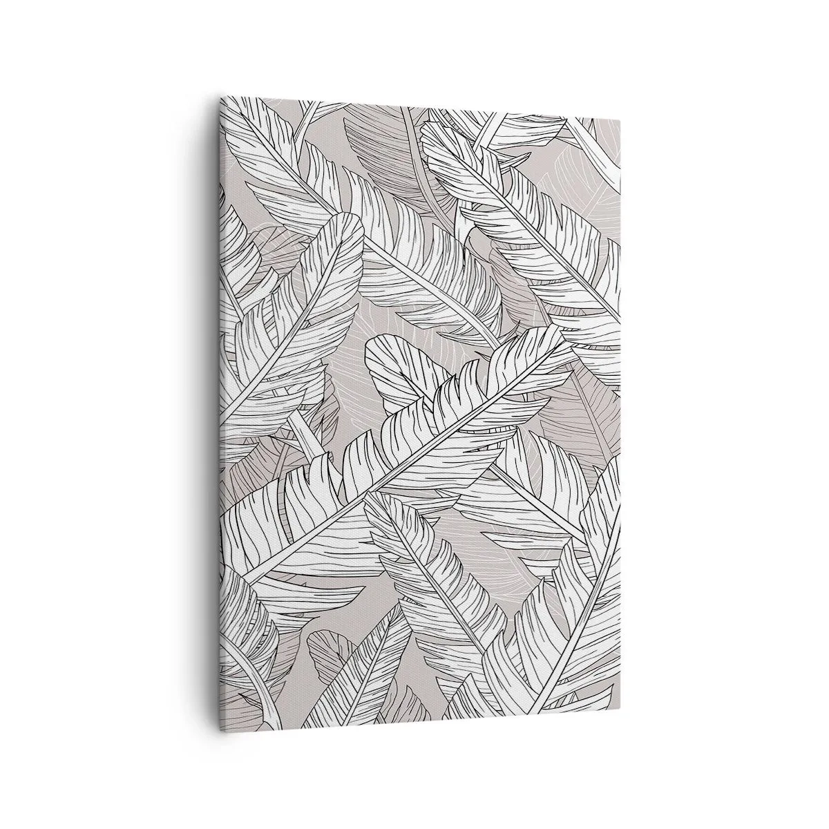Obraz na płótnie - Czarno-białe liście na jasnym tle - 50x70cm - Pierzasta zawierucha - Nowoczesna dekoracja ścienna do salonu, kuchni i sypialni ARTTOR
