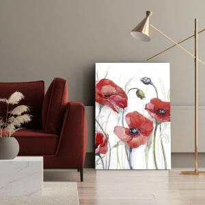 Obraz na płótnie - Akwarelowe maki na białym tle - 50x70cm - Kwiaty polskie - Nowoczesna dekoracja ścienna do salonu, kuchni i sypialni ARTTOR
