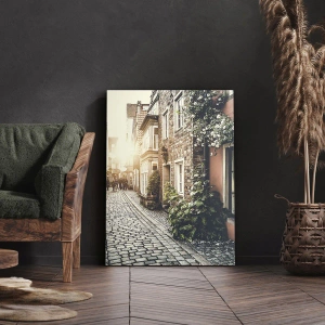 Obraz na płótnie - Urokliwa uliczka w stylu vintage - 50x70cm - Różany zaułek w różowym blasku - Nowoczesna dekoracja ścienna do salonu, kuchni i sypialni ARTTOR