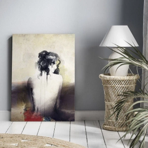 Obraz na płótnie - Subtelny portret kobiety w akwarelowym stylu - 50x70cm - Łagodne linie, owalne kształty - Nowoczesna dekoracja ścienna do salonu, kuchni i sypialni ARTTOR