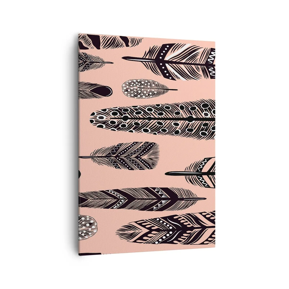 Obraz na płótnie - Dekoracyjne pióra na jasnym tle - 70x100cm - Indiańska kolekcja - Nowoczesna dekoracja ścienna do salonu i sypialni ARTTOR