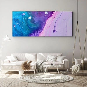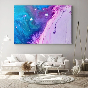 Obraz na płótnie - Abstrakcyjna mieszanka fioletu, różu i błękitu w płynnej formie - 50x70cm - Yin i yang - Nowoczesna dekoracja ścienna do salonu, kuchni i sypialni ARTTOR