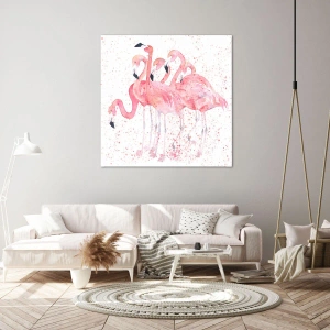 Obraz na płótnie - Różowe flamingi w artystycznym akwarelowym stylu - 70x100cm - Różowy ansambl - Nowoczesna dekoracja ścienna do salonu i sypialni ARTTOR