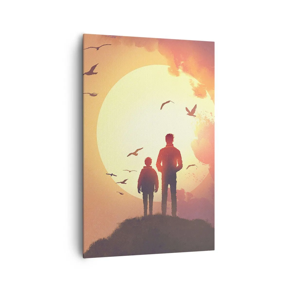 Obraz na płótnie - Postacie na tle zachodzącego słońca - 80x120cm - Ze słońcem twarzą w twarz - Nowoczesna dekoracja ścienna do salonu i sypialni ARTTOR