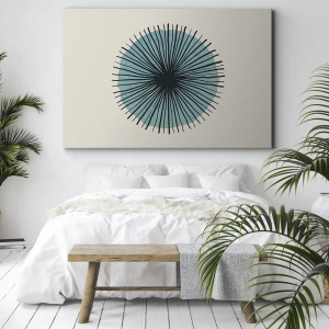Obraz na płótnie - Abstrakcyjna forma w kształcie koła z promieniami w błękitach - 70x100cm - Promieniście na błękicie - Nowoczesna dekoracja ścienna do salonu i sypialni ARTTOR