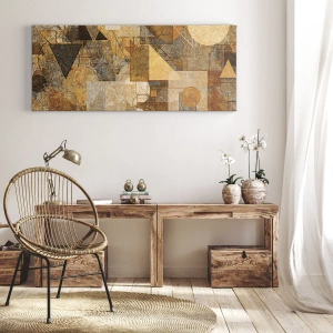 Obraz na płótnie - Abstrakcyjne geometryczne figury w ciepłych odcieniach - 80x120cm - Kubistyczne studium brązu - Nowoczesna dekoracja ścienna do salonu i sypialni ARTTOR