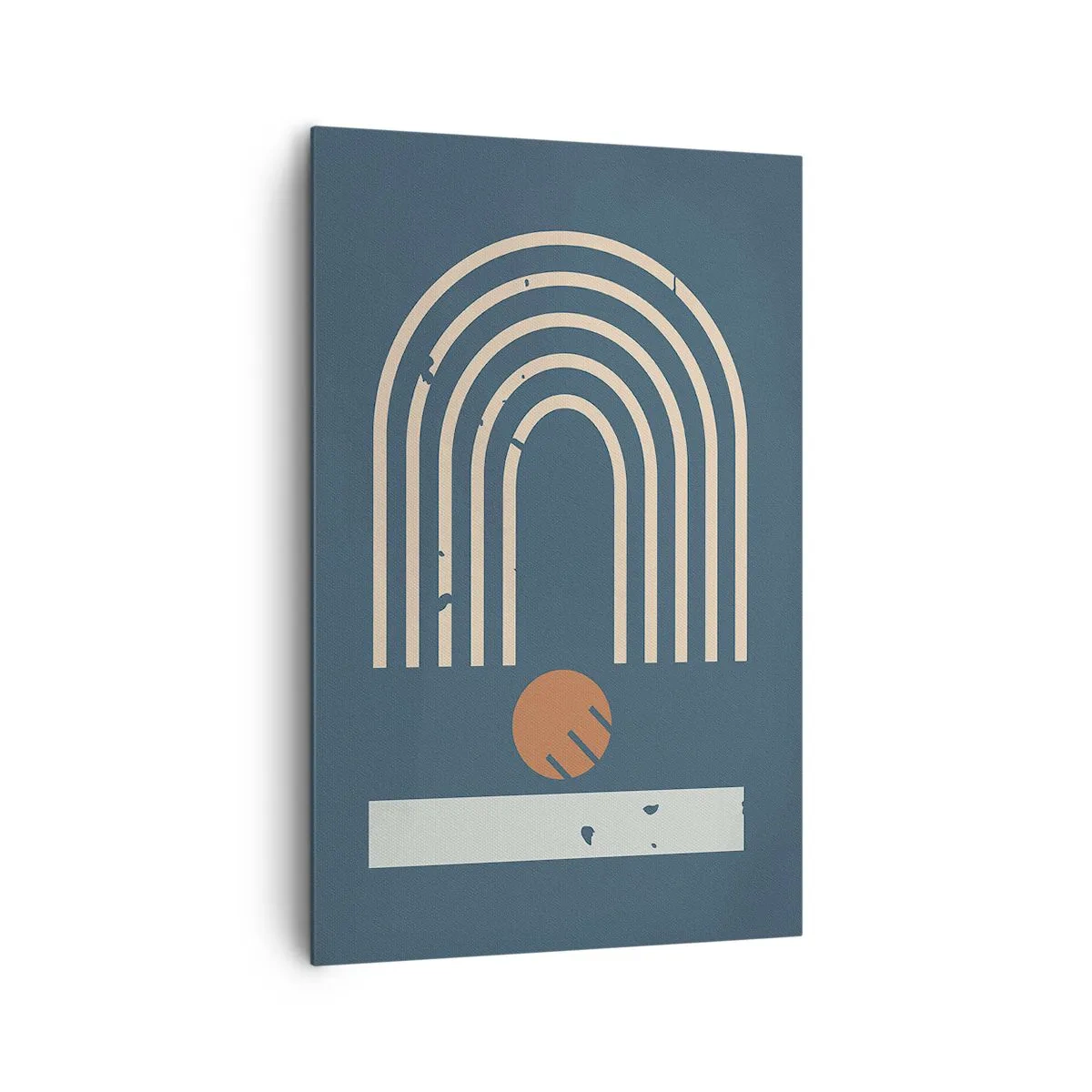 Obraz na płótnie - Geometryczny wzór w odcieniach granatu, beżu i pomarańczu na ciemnym tle - 80x120cm - Geometria na granacie - Nowoczesna dekoracja ścienna do salonu i sypialni ARTTOR