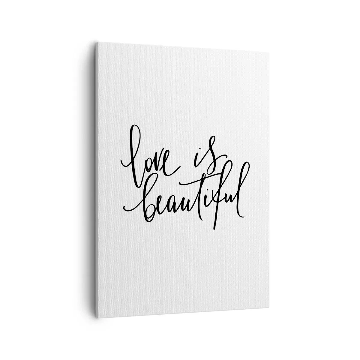 Obraz na płótnie - Minimalistyczny napis "Love is beautiful" na białym tle - 50x70cm - Czytaj i powtarzaj - Nowoczesna dekoracja ścienna do salonu, kuchni i sypialni ARTTOR