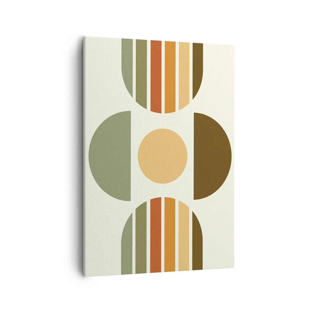 Obraz na płótnie - Geometryczna abstrakcja w odcieniach zieleni, pomarańczu i beżu - 50x70cm - W kolorach ziemi - Nowoczesna dekoracja ścienna do salonu, kuchni i sypialni ARTTOR