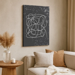Obraz na płótnie - Abstrakcyjna linia na czarnym tle z drobnymi detalami - 80x120cm - Błądzenie myśli - Nowoczesna dekoracja ścienna do salonu i sypialni ARTTOR