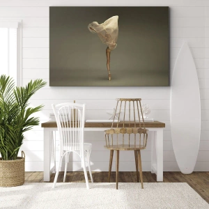Obraz na płótnie - Baletnica w delikatnej pozie z powiewającą tkaniną - 50x70cm - Zaraz wzleci - Nowoczesna dekoracja ścienna do salonu, kuchni i sypialni ARTTOR