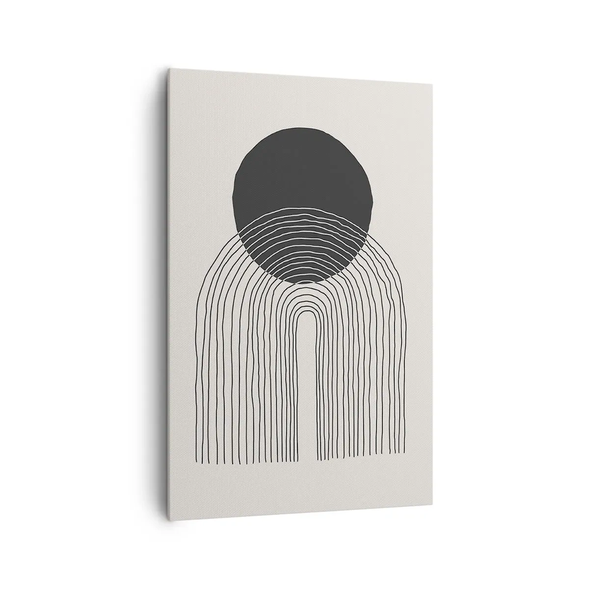 Obraz na płótnie - Abstrakcyjny wzór z liniami i czarnym kołem na jasnym tle - 80x120cm - Drżenie i pewność - Nowoczesna dekoracja ścienna do salonu i sypialni ARTTOR