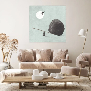 Obraz na płótnie - Symboliczna scena z postacią i balansem na tle jasnego nieba - 70x100cm - Spełnione marzenie - Nowoczesna dekoracja ścienna do salonu i sypialni ARTTOR