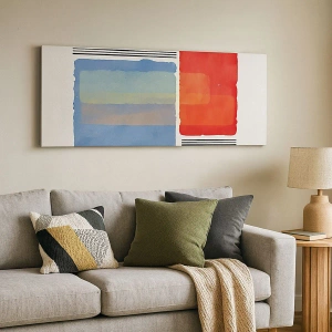 Obraz na płótnie - Geometryczna kompozycja z kolorowymi blokami i liniami - 80x120cm - Duch i litera geometrii - Nowoczesna dekoracja ścienna do salonu i sypialni ARTTOR