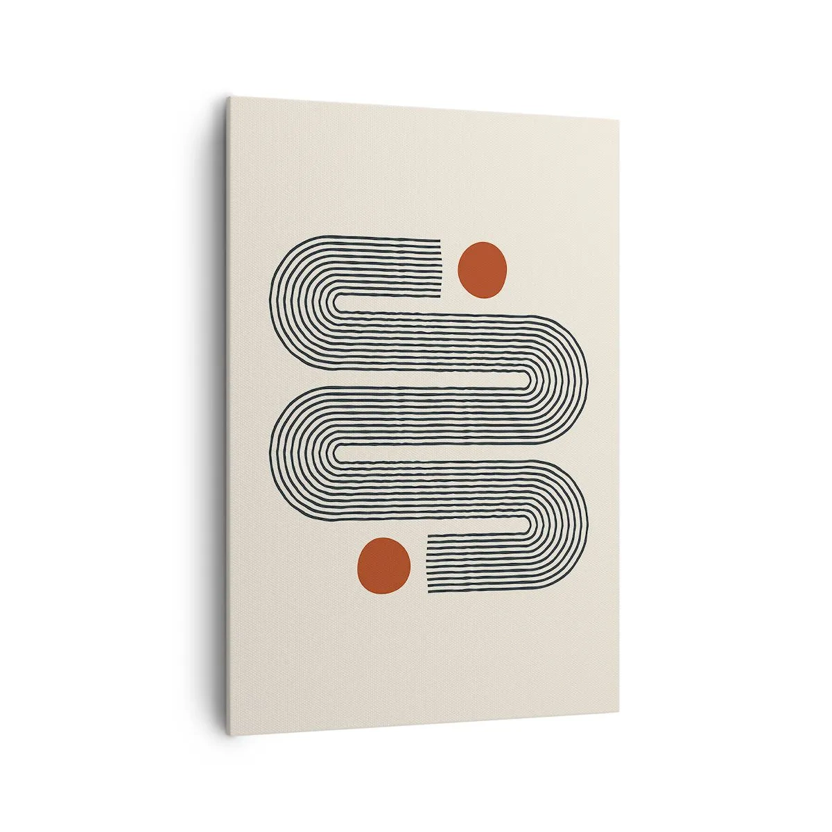 Obraz na płótnie - Geometryczny wzór z liniami i pomarańczowymi okręgami - 70x100cm - Od początku do końca - Nowoczesna dekoracja ścienna do salonu i sypialni ARTTOR