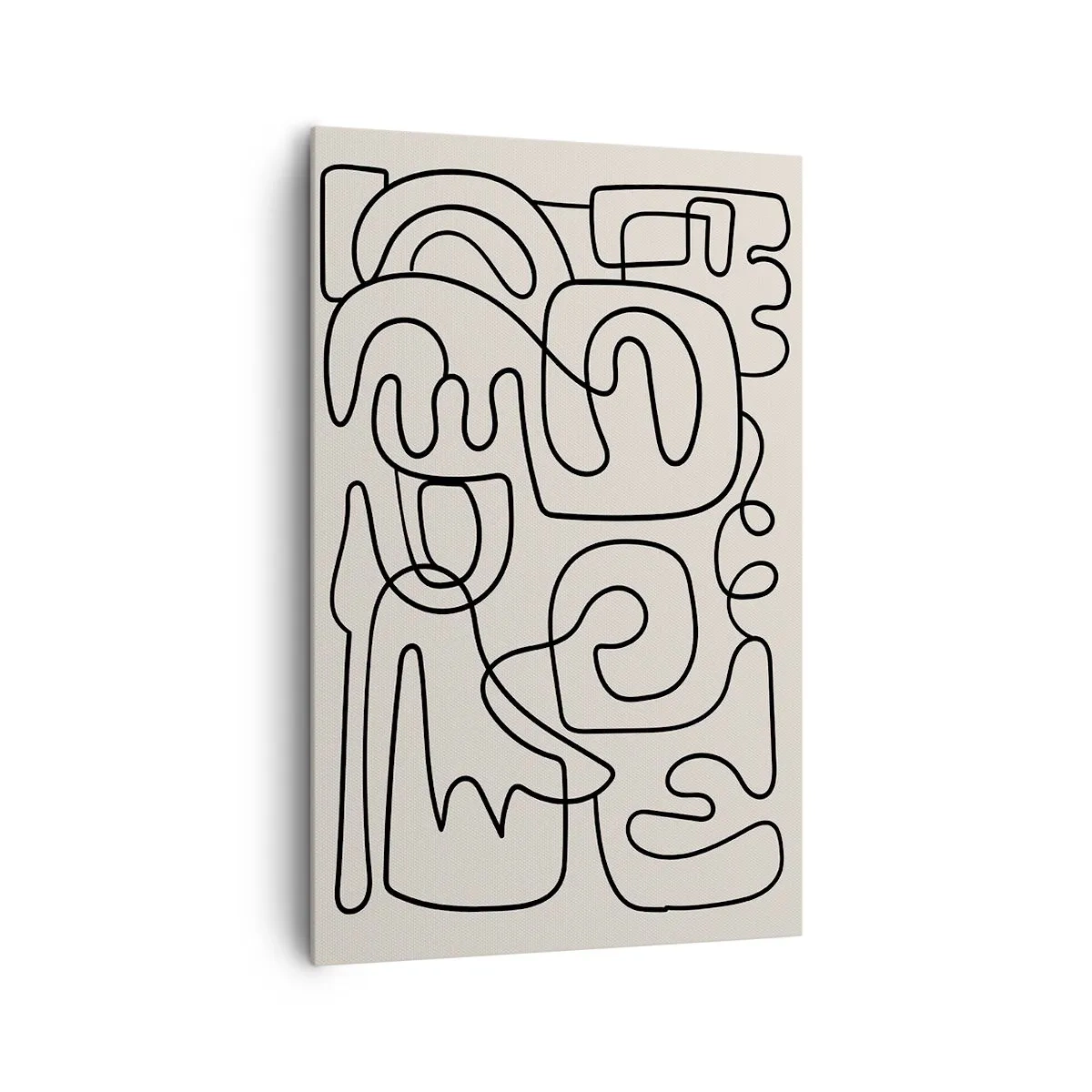 Obraz na płótnie - Abstrakcyjny wzór line art w czerni na jasnym tle - 80x120cm - Po śladzie - Nowoczesna dekoracja ścienna do salonu i sypialni ARTTOR