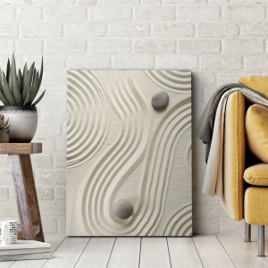 Obraz na płótnie - Minimalistyczny wzór zen z piaskiem i kamieniami - 70x100cm - Dotyk ciepła - Nowoczesna dekoracja ścienna do salonu i sypialni ARTTOR