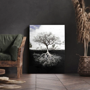 Obraz na płótnie - Drzewo z widocznymi korzeniami pod powierzchnią ziemi - 70x100cm - Odkrycie natury świata - Nowoczesna dekoracja ścienna do salonu i sypialni ARTTOR