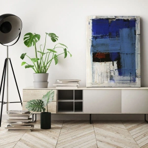 Obraz na płótnie - Abstrakcyjna kompozycja w odcieniach niebieskiego i bieli - 70x100cm - Sekret błękitu - Nowoczesna dekoracja ścienna do salonu i sypialni ARTTOR