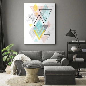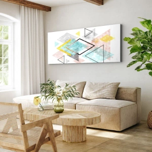 Obraz na płótnie - Kolorowe geometryczne wzory na białym tle - 140x50cm - Igraszka geometryczna - Nowoczesna dekoracja ścienna do salonu i sypialni ARTTOR