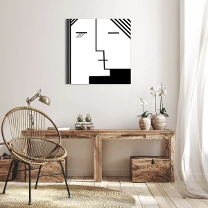 Obraz na płótnie "Po prostu pocałunek" to wyjątkowa kompozycja, która łączy w sobie prostotę i emocje. Przedstawia abstrakcyjny pocałunek z wykorzystaniem geometrycznych kształtów, utrzymanych w monochromatycznej kolorystyce czerni i bieli. Minimalistyczna forma i wyraziste linie nadają dziełu elegancji i nowoczesnego charakteru.