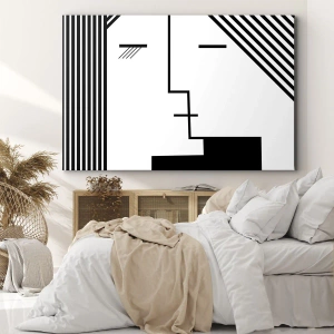 Obraz na płótnie - Geometryczna abstrakcja przedstawiająca pocałunek w czerni i bieli - 70x50cm - Po prostu pocałunek - Nowoczesna dekoracja ścienna do salonu i sypialni ARTTOR