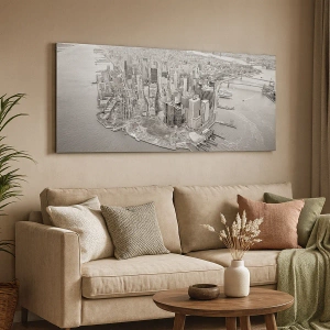 Obraz na płótnie - Czarno-biała panorama Nowego Jorku z lotu ptaka - 50x70cm - Jak nie pokochać? - Nowoczesna dekoracja ścienna do salonu, kuchni i sypialni ARTTOR