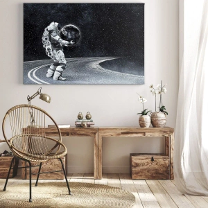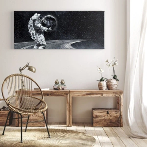 Obraz na płótnie - Astronauta z Ziemią na tle gwiaździstego nieba - 120x50cm - Na Mlecznej Drodze - Nowoczesna dekoracja ścienna do salonu i sypialni ARTTOR