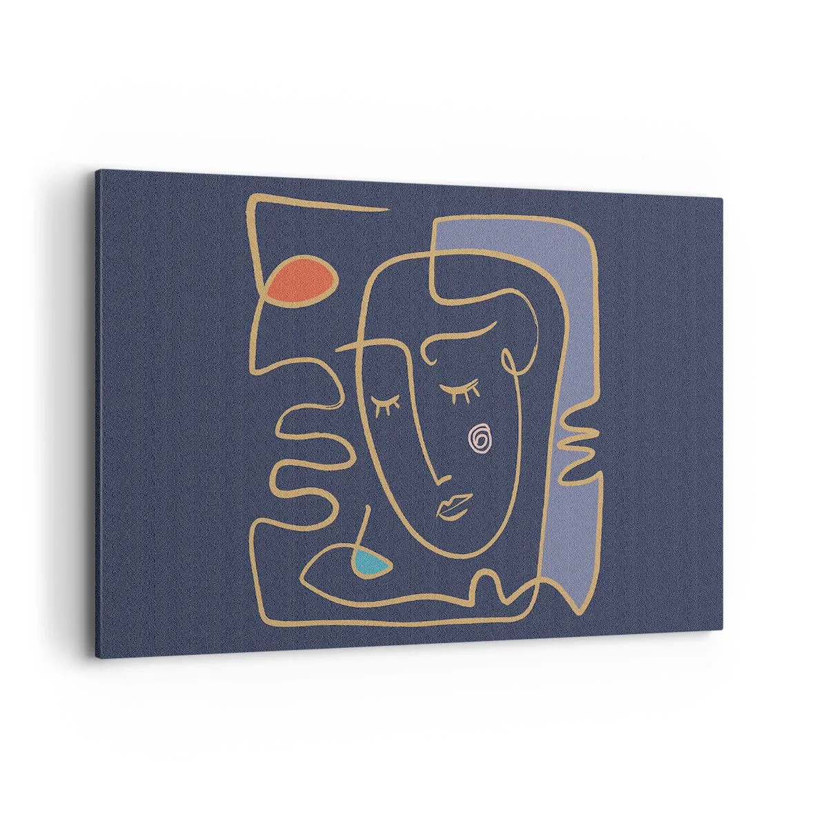 Obraz na płótnie - Abstrakcyjny portret twarzy w minimalistycznym stylu - 120x80cm - W zamyśleniu - Nowoczesna dekoracja ścienna do salonu, kuchni i sypialni ARTTOR