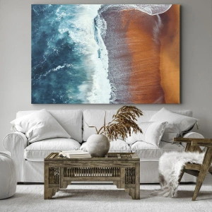 Motyw oceanu i plaży wprowadza do wnętrz atmosferę spokoju i relaksu, idealną do odpoczynku i refleksji. Dzięki unikalnej perspektywie obraz oddaje majestat natury, jednocześnie zapraszając do marzeń o podróżach i tropikalnych przygodach. To doskonała dekoracja do salonu, sypialni czy biura, która nadaje przestrzeni wyjątkowego charakteru.